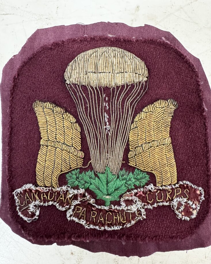 Bullion embroidery on maroon background. Measures approximately 5.5 x 5 inches. Reputedly formerly belonged to Harold Elliot, a former member.