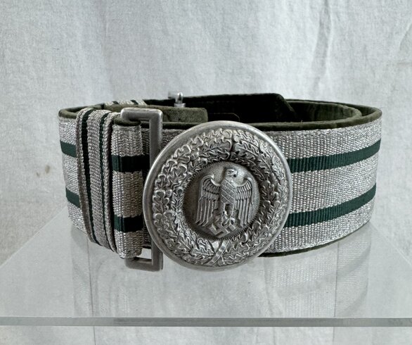 Excellent condition officers brocade belt and buckle size 95. Assman marked. Nice larger size.
