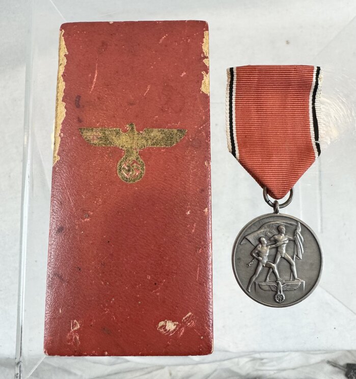 Good condition medal and original case for the Anschluss or the Annexation of Austria. Some loss of paint to the box. Nice set.