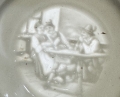Very good condition reservists stein for the 132nd Regiment of Infantry from Strasbourg. Named to reservist Huffner for his service from 1905-1907. Shows soldiers in dunkelblau uniforms. Pewter lid is slightly loose but apart from that, perfect condition. Interior scene shows a bucolic tavern scene.