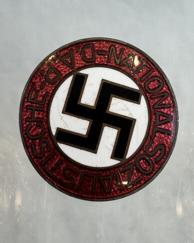 Excellent condition Nazi party pin. Maker marked M1/8 for Ferdinand Wagner of Pforzheim.