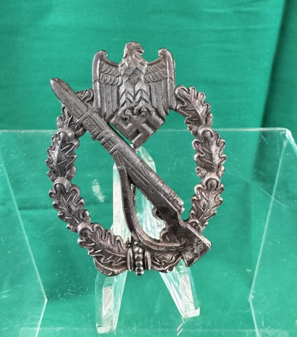 Silver Infantry Assault badge. Very good condition. Not much frosting left. Just on the highlights.